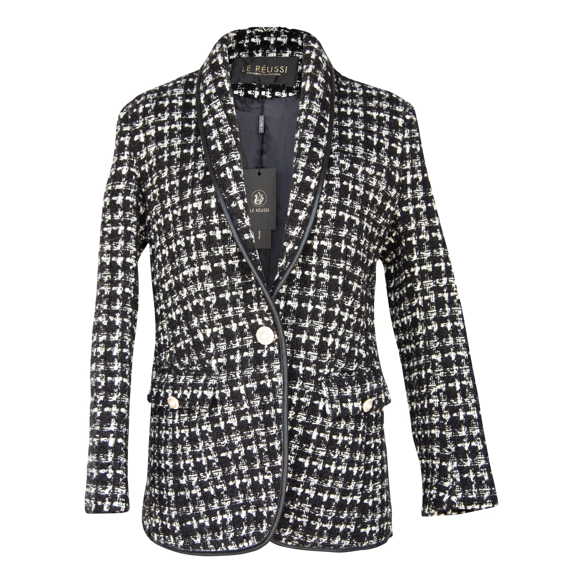 Blazer à carreaux en tweed noir et blanc – Veste cintrée chic pour femme