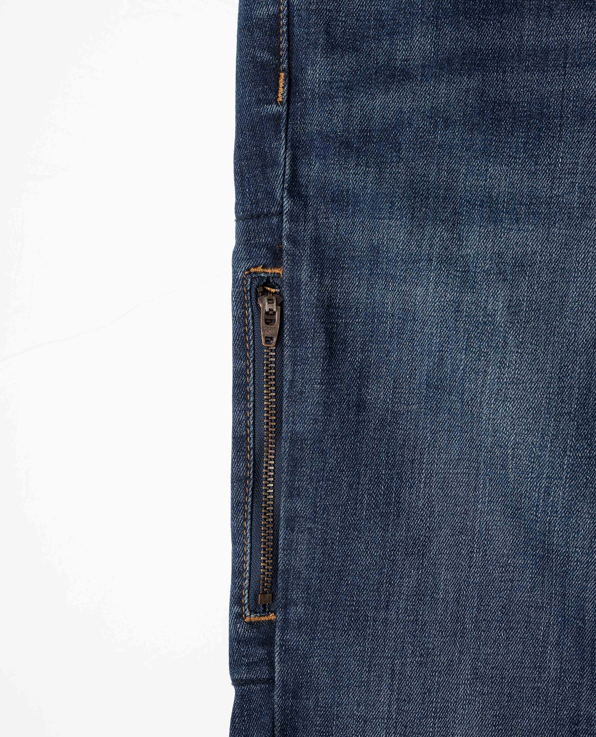 We selected a rugged yet supple denim for these do-it-all jants, a fabric that pairs the durability of Cordura® with recycled Repreve® synthetic material. The result is a pair of jeans that feels tough but won't hold you back from pedaling, pogo-sticking, or punting footballs.