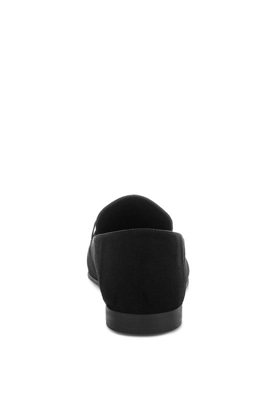 A staple in the shoe closet, the flat loafers are a classic pair with the chic metallic horsebit embellishment. The pair is crafted with high quality microfiber and has comfortable cushion insoles which are soft on the feet and cut strain.