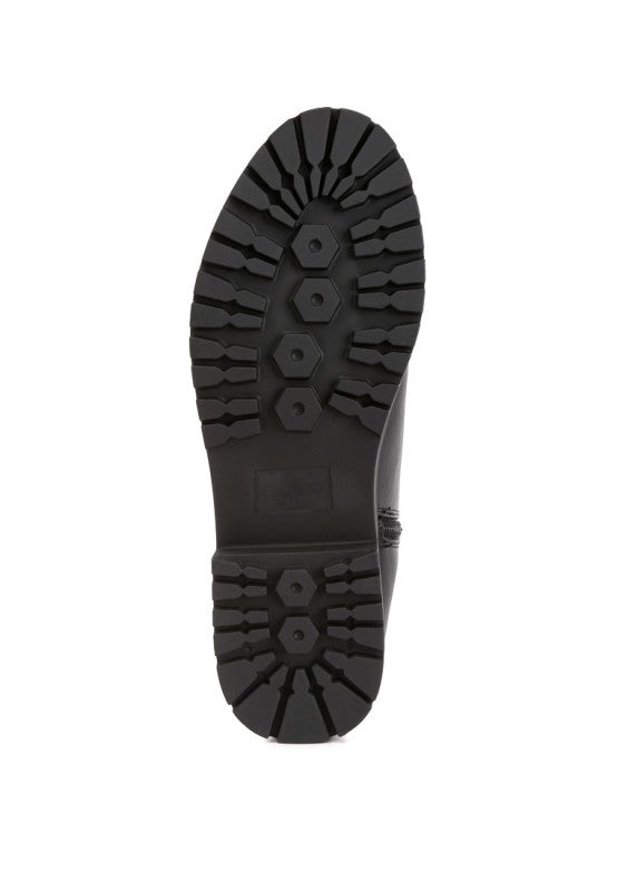 Get our classic ankle-length boots with edgy features to kick-start the new fashion season. These boots feature a metallic frame that enhances and upgrades your outfits. The metallic zipper closure adds an industrial edge to the look, making them perfect for all adventurous souls!