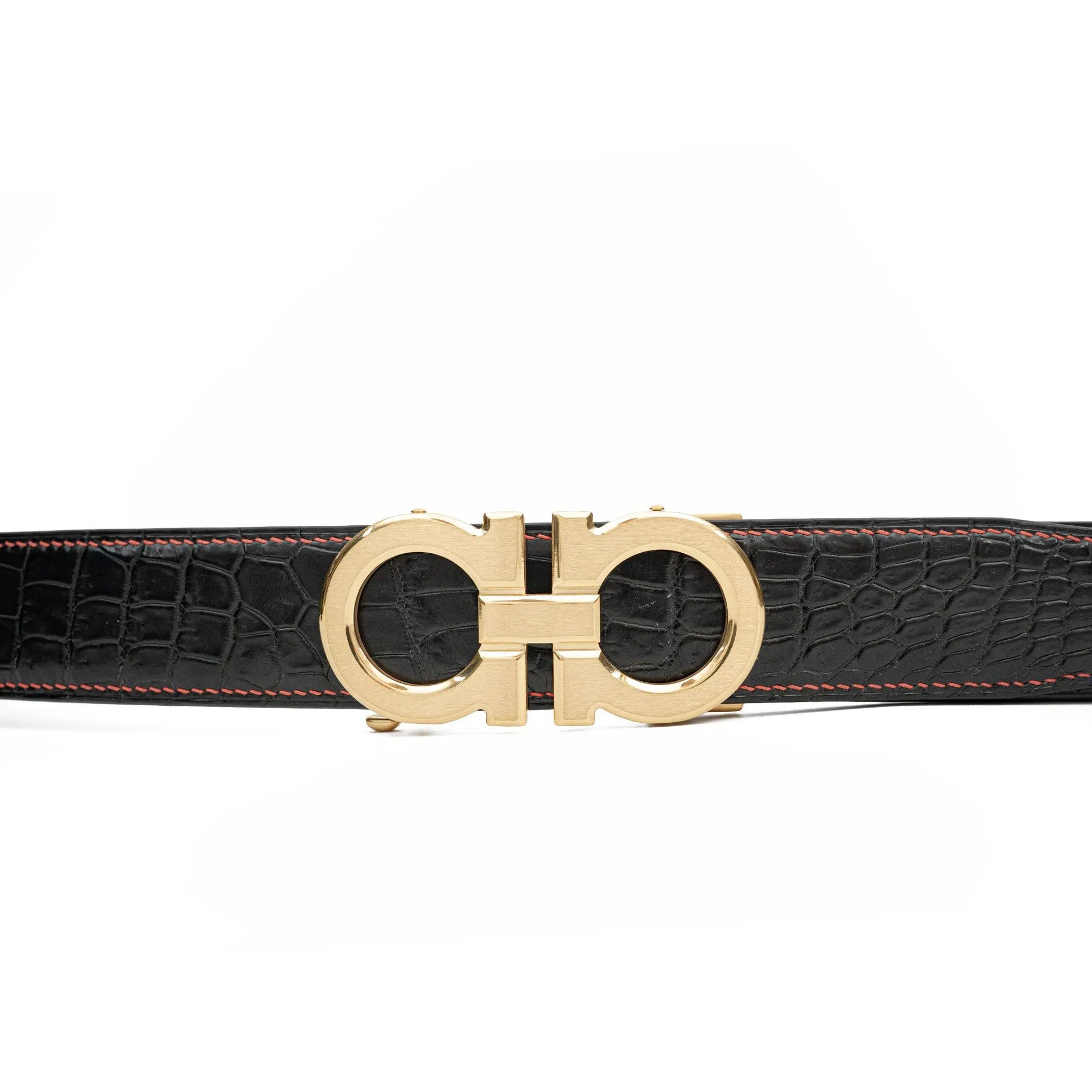This alligator leather belt is highly popular for its outstanding tactile strength. This alligator leather belt is one of the strongest leather belts you can find in your wardrobe. Thanks to the naturally appearing oils in alligator leather, these keep the belt from cracking even in extreme weather conditions too.